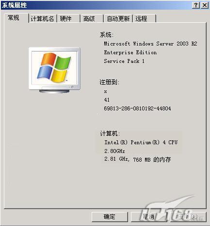 | 图2 Windows Server 2003 R2 的“我的电脑”的系统属性中的“常规”标签 |