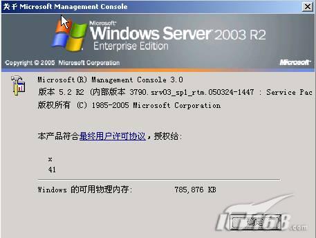 除了登录界面外,安装完Windows Server 2003 R2后会从几个地方显示出来,其中之一是在“我的电脑”的系统属性中的“常规”标签,如图2 。