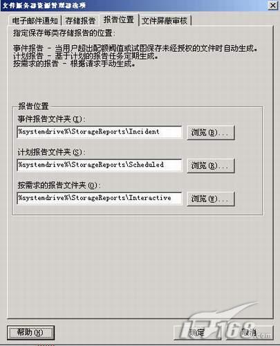 存储报告。文件服务资源管理器 (FSRM) 提供了一个可快速标识、监视和修复存储资源管理中效率低下问题的简便方法。管理员可以配置专门的报告,也可以请求以预定义的输出方式提供报告,其中包括: 文件大小、 最少使用、 所有者、 副本等报告, 这些报告均可以多种格式(HTNL、DHTML、XML、TXT文本、)提供。