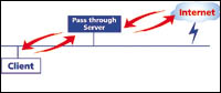 在网络边缘的内容过滤产品有两种表现方式,旁路式(Passby)和穿透式(Passthrough)。旁路式内容过滤产品是独立的,它监听网络上所有信息,并有选择的对基于TCP的连接进行阻断。穿透式内容过滤产品依赖于其他网络边缘处的基础平台。穿透式内容过滤产品根据网络边缘接入基础平台的访问请求,作出允许或禁止的判断,然后由这些平台执行过滤的动作。