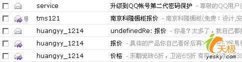 选中显示邮件摘要后的情况,抓个图大家看下,抓了点垃圾邮件的图,大家一目了然,同时也保护了我的隐私,嘿嘿。