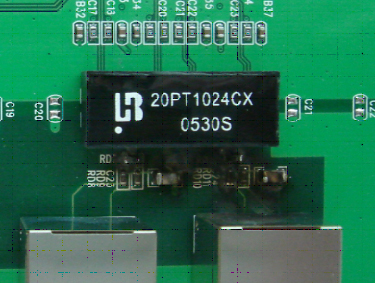图一是雷击重伤的情况,在这种情况下雷电打进局域网或广域网,强大的能量在第一个接受能量的电子元器件爆发,我们可看到一片焦黑,相关的小元器件也都焦黑一片,这一般是能量较大,直接受到雷电攻击情况。