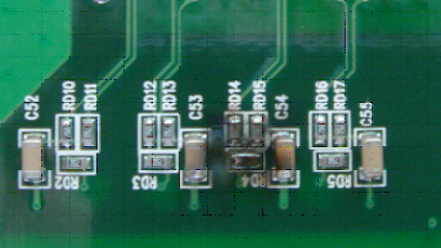 图二则是一个轻伤的例子,在这个情况下,能量较小,因此可能损害较小的元器件,对于较大的元器件无法伤害,因此可看到有些小元器件附近有焦黑现象。