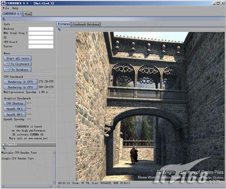 CINEBENCH是一款基于一个3D设计软件 ——CINEMA 4D的免费测试工具,是基于实际应用的专业3D软件包。CINEBENCH 9.5测试包括CPU子系统和图形性能两大部分,CPU部分又分为单CPU(线程)和多CPU(线程)2个子项目,并给出单线程和多线程结果的提升比率,非常直观。由于对CPU性能测试比较准确,更是少见的支持多核CPU的软件之一,所以现在也常常被用于服务器CPU测试。Intel官方在演示E5320的时候,就多次利用这个测试软件,由此也看出这个测试软件的权威性。