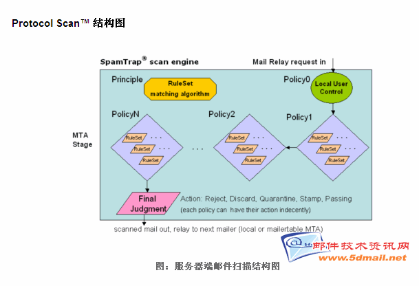 以贝叶期算法为代表的内容关键字过滤技术曾经在邮件安全方面发挥了重要的作用,但是随着发垃圾邮件技术的提高,此项技术已经不能满足当前的需求,特别是对图像类型的垃圾邮件以及带超连接类型的垃圾邮件,内容过滤技术无法阻挡此类邮件,当前只有Protocol scan™技术完全能阻挡此类邮件。