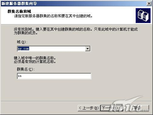 步骤2:然后会弹出群集创建的向导,单击“下一步”后,在如图8所示设置窗口中,输入域名及集群名后单击“下一步”按钮。