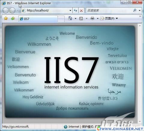 启动IIS服务,在IE浏览器中键入地址:“http://localhost/”,怎么样,测试成功,看到欢迎页面了吗?如图4。