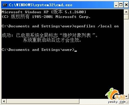 有时文件被占用现象并不是由Explorer.exe系统进程引起的,所以我们即使关闭了Explorer.exe系统进程,某些“流氓”文件仍然无法被正常驱逐出去。那么那些待删除的“流氓”文件究竟是被谁占用着呢,我们又该如何驱逐这类被占用的“流氓”文件呢?事实上,我们只有刨根挖底,“揪出”占用文件的具体系统进程,然后强行结束该目标进程,最后就能轻松地将被占用的“流氓”文件驱逐出系统去了。要做到这一点,我们可以使用Windows XP系统自带的“openfiles”命令,来轻松“揪出”占用文件的具体系统进程,下面就是具体的操作步骤: