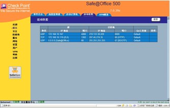 活动流量列出了当前通过Safe@Office设备所有的活动连接,包括连接协议、源IP地址、源端口、目的IP地址、目的端口、QOS类型等。