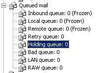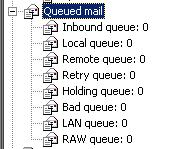 在MDaemon控制台,查看左侧的队列统计栏中,是否有队列积压了大量信件(如下图):