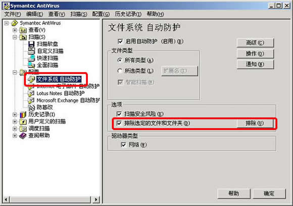 在所有的防病毒软件中的设置始终遵循下列原则:
