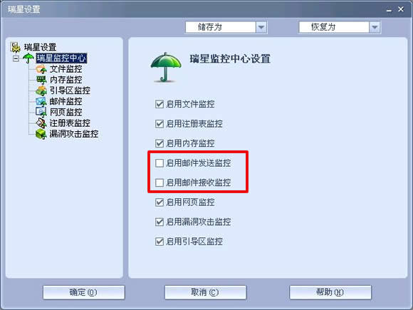 在右下角系统栏中右键点击瑞星图标,选择“监控设置”: