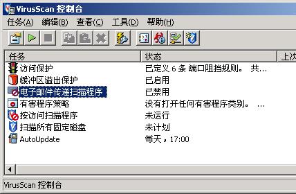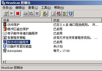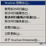 右键点击系统栏中的MacFee图标,选择“VirusScan”控制台: