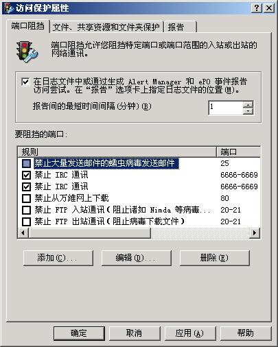 在访问保护属性中取消“禁止大量发送邮件的蠕虫病毒发送邮件”: