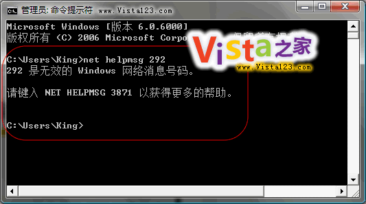 然后,在命令行运行:net helpmsg 292 即可。