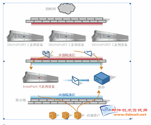 通过将所有终极用户的数据集中到一台专用的IronPort M系列设备上,管理员可以很容易地将每位终极用户的信息访问限制在受到内部保护的网络里,因此管理员再也不需要为了让用户可以进入安全隔离区而在防火墙上预留一个洞了。