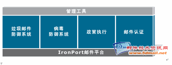高性能的垃圾邮件防御系统 这是一个专门针对 ISPs (互联网服务提供商)和大型企业的解决方案。IronPort防垃圾邮件过滤器,使用基于IronPort独有的CASE威胁侦察系统, 来