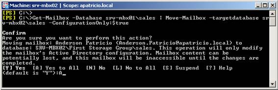 get-mailbox –database <old database> | move-mailbox –targetdatabase <new database> -configurationonly:$true