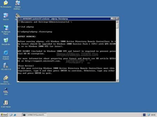 在Windows2003域环境里面任何的一台DC上(最好是架构主机),把Windows2008光盘下的source\adprep子目录拷贝到硬盘里面,并在CMD下执行:adprep /forestprep、adprep /rodcprep和adprep /domainprep /gpprep。