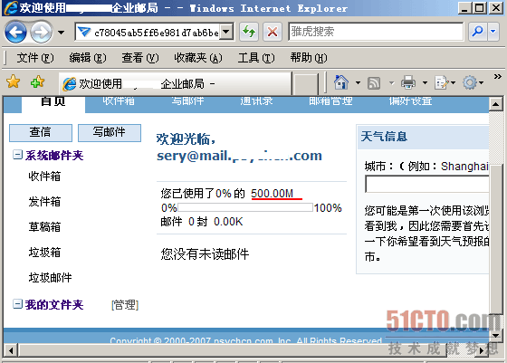 默认情况下,postfix 数据库的mailbox表的字段"quota"值是"0",它表示用户的油箱大小是100M,假如我们要把用户的邮箱大小设置成500M,则只需连接数据库postfix更改mailbox表"quota"字段的值为"524288000"。