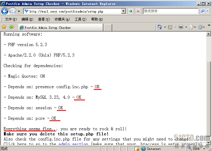 待所有的服务都正常后,用postfixadmin创建邮件域和用户。创建完毕,通过查看postfix日志/var/log/maillog了解操作是否成功;同时通过查看目录/var/mailbox里是否生成与创建的邮件帐户同名的目录。