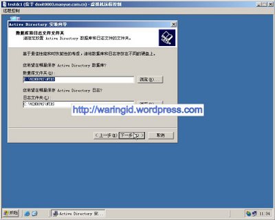 AD数据库及日志的存放位置:如果系统中的用户数过多,或是C盘的空间不够,请更改其存放路径.微软建议:数据库和日志最好是分开存放