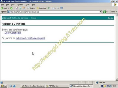 选择"use the Advanced certificate Request form",因为我们要申请的是用于邮件签名的证书,所以必须要申请支持邮件加密功能的证书才行,一般情况下选择"User"证就可以了.