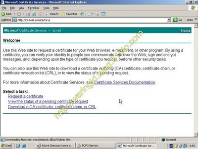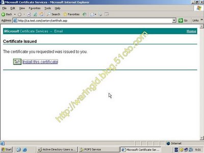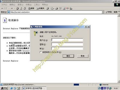 以administrator的身份登陆DC,打开IE,在其中输入"http://ca.test.com/certsrv
