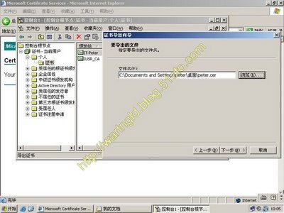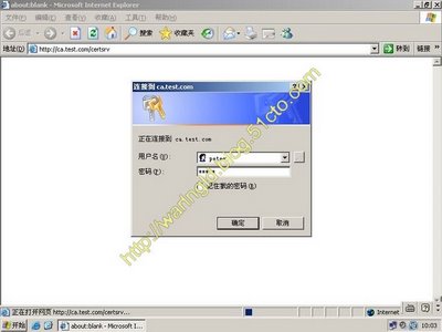用peter用户名在xp.test.com上申请证书并安装,其申请方法同三.只是在要求输用户名和密码时输入peter的用户名和密码.