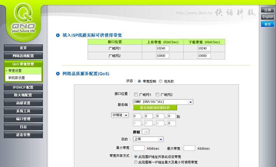 自从P2P协议问世之后,其强行占据所有带宽导致局域网内其他机器无法上网的现象致使广大的网络管理人员头痛万分,为此,侠诺技术人员研发了SmartQoS功能,“动态智能QoS”可以设置整体对外带宽大小及针对单一用户可占用带宽上下限大小,设定好后路由器就进行动态的智能管理,对于突发的带宽需要可以被允许,但是对于持续占用带宽的用户会被限制,同时又提高了路由器的效能。