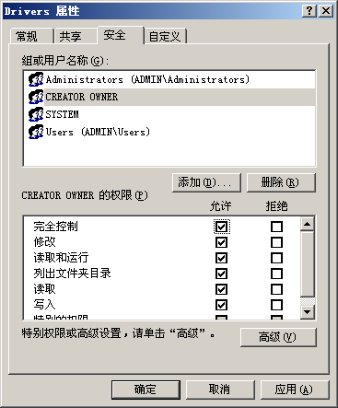 小提示:如果不是NTFS分区,那么则可以通过“Convert 盘符 /FS:NTFS”命令来转换;如果属性窗口中没有“安全”标签,则需要打开“文件夹选项”窗口,在“查看”标签中将“使用简单文件共享”选项取消。