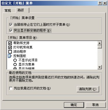 小提示:该项应用是Windows XP中出现的。因此开始菜单样式必须采用XP中的“开始菜单”列表,而不能使用传统的“经典开始菜单”样式。