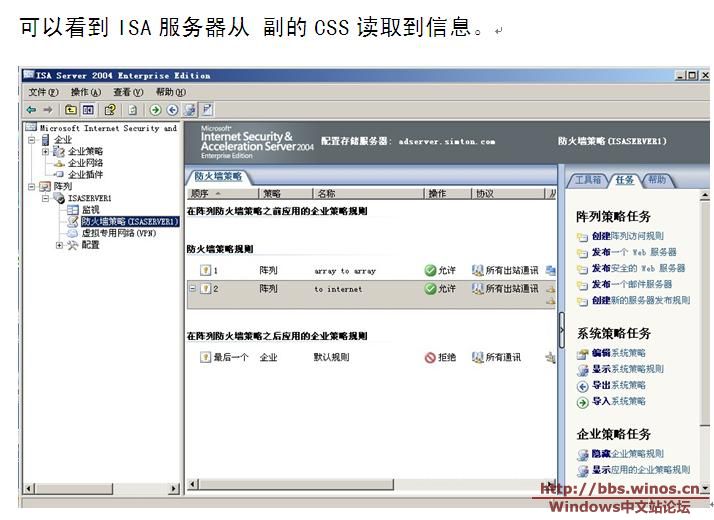 完成后在ISA控制台里建立阵列内完全允许策略以使第二台能顺利安装。
