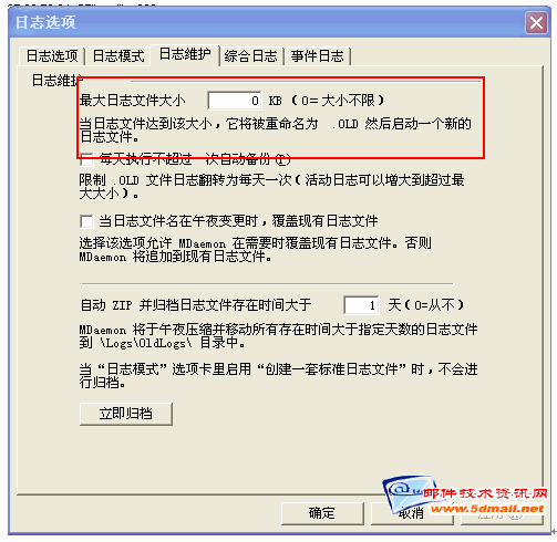 3、日志维护:对于流量特别大的企业,日志会很大,那么可以在此处设置归档符合条件的日志,具体可以调整设置: