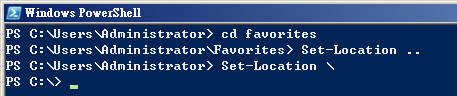 Windows PowerShell 內建了四個 cmdlet 讓我們可以處理 PS 磁碟機的目前工作位置,我們需要利用這些 cmdlet 來取得或設定 PS 磁碟機的現行目錄,以便進一步的操作,這四個 cmdlet 包括了上述的 Set-Location ,以及 Get-Location、Push-Location、Pop-Location。