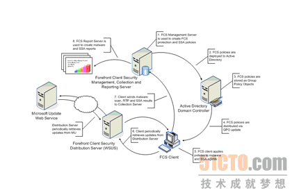 另外,如果按照Forefront Client Security包括的组件所执行的职能来分,还可以分成以下部分: