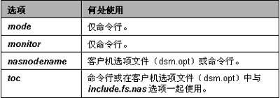 使用 mode 选项指定是执行完全 NAS 映像备份还是执行差异 NAS 映像备份。完全映像备份备份整个文件系统。缺省值是差异 NAS 映像备份,仅对上次完全映像备份后更改的文件执行备份。如果不存在合格的完全映像备份,则执行完全映像备份。