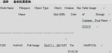 备份完成后查看备份(q nasbackup命令):