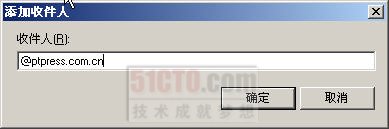 另外,需要说明的是,在如图6-54所示的“收件人”文本框中既可以输入域方式(如@ptpress.com.cn),也可以直接输入SMTP的IP地址(如@61.136.62.81)。