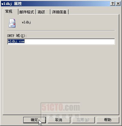 下面介绍SMTP策略的意义。选取新建的(本例为wldhj),单击鼠标右键,在出现的快捷菜单中选取“属性”命令,打开如图6-44所示的对话框。