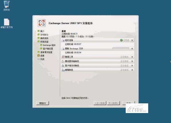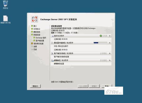 如果这些条件服务安装过程中出现错误的情况的话,你需要根据提示信息来排查问题所在。如果安装成功的话,我们进行部署Exchange服务器的下一步工作。