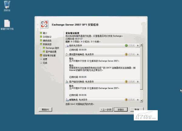 接下来安装向导对系统和服务器进行检查,以查看是否可以安装Exchange,如图10所示: