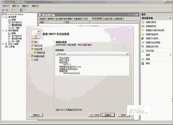 在完成窗口中我们看到该发送连接器已经创建成功了,邮箱用户可以收发邮件了。