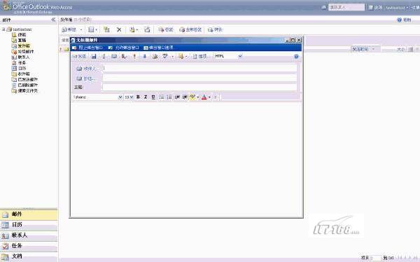 安装、设置完成后,我们可以通过Outlook 2007连接该邮件服务器,也可以直接使用微软的Web邮件客户端来登录该邮件服务器,如图21所示: