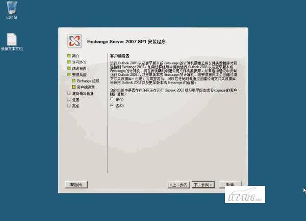 接下来对客户端进行设置,根据你的组织中是否存在任何正在运行Outlook 2003以及更早版本或Entourage的客户端计算机,来选择是或否,如图9所示: