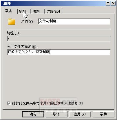 下面来添加一个名为“文件与制度”的公用文件夹,来说明公用文件夹的创建与其他选项的意义。
