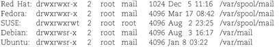 在使用/var/spool/mail或/var/mail库的系统中,邮件目录是在操作系统的安装过程中创建的。除非您使用mail.local作为您的本地邮寄程序(在这种情况下,它的权限设置可能为755),否则应该把它的权限设置为模式775,属组为mail 。在我们举例的Linux平台上稍微有一点儿不同。
