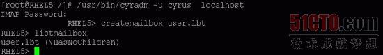 为用户创建邮件信箱后,可以使用listmailbox命令列出Cyrus-IAMP系统中已有的用户邮件信箱,上述命令的执行情况如图9-23所示。