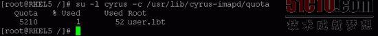 为用户信箱设置配额,可以限制用户信箱使用磁盘空间的容量。例如,在cyradm管理命令行状态下,如果要为用户lbt的信箱user.lbt设置5MB的配额,可使用下面的命令。