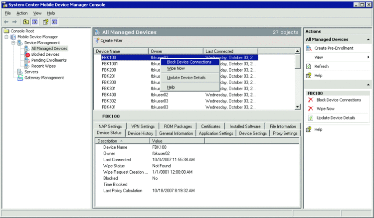 Figure 3 Mobile Device Manager Console (单击该图像获得较大视图)